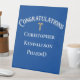 Felicito a un farmacéutico que ha sido ascendido, retirado o graduado con este diseño caduceus con temática médica. Elegante diseño dorado, negro y blanco resalta el nombre de la persona que es honrada.