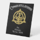 Felicitar a un médica de odontología que ha sido ascendido, retirado o graduado con este diseño de emblema de odontología. Elegante diseño falso dorado, negro y blanco resalta el nombre de la persona a la que se honra. Sencillo y moderno. La manera perfecta de celebrar a alguien que complete allí entrenamiento médico, retiro o ascenso. Exposición en el cargo, ceremonia de graduación o fiesta de grado.