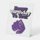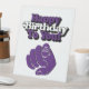 Este cartel peatonal muestra las palabras "¡Feliz cumpleaños a ti!" en un letra negrita con letras moradas y blancas y contorno negro con un dedo señalando en este tema y estilo de cumpleaños. Impreso con impresión digital de alta calidad y a todo color disponible en 4 tamaños de pantalla de 1/16" de poliestireno de plástico blanco de 10" x 12" con base de 3".