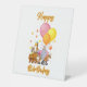 Este cartel peatonal muestra las palabras "Feliz cumpleaños" en una letra impresa única con letras naranjas contorno amarillo con varios animales de la selva, globos de fiesta de cumpleaños y serpenteantes en este tema y estilo de cumpleaños. Impreso con impresión digital de alta calidad y a todo color disponible en 4 tamaños de pantalla de 1/16" de poliestireno de plástico blanco de 10" x 12" con base de 3".