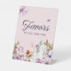 Esta colorida ducha de novia floral favorece la señal de velador, perfecta para su elegante y caprichosa ducha de fiesta de té con novia.