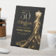 Elegant Fifty and Fabulous Gold Dress 50th Birthday Welcome Pedestal Sign that you can personalize and send out for your fiftieth birthday party celebration. This sign features a gold and diamond-studded 50 and a sparkling gold gown. The words Fabulous and the name are set using trending bold font typography.