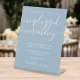 Esta elegante señal de ceremonia sin dispositivos electrónicos con letra minimalista en dusty blue es perfecta para tu celebración de boda. Diseñado por Thisisnotme©
