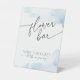 "Bar de flores - haz un ramo para tomar tu camino" con el tema "Shes on cloud nine" para una moderna ducha de flores en un polvoriento esquema de color azul. Diseñada con un toque contemporáneo, esta decoración de personalizable le da un toque de elegancia a su celebración. También está disponible en esta colección la invitación coincidente, las tarjetas de inscripción y otros signos.