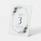 Añada un toque personal a la celebración de su boda con estos artículos fiestas elegantes y memorables. El diseño presenta flores de color azul y marino, vegetación y marco dorado sobre fondo blanco.