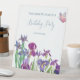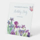 Flores de iris Fiesta de cumpleaños Rótulo Pedestal con texto azul y acuarela