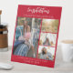 Fotos del collage de guiones de la tabla de la fiesta de graduación del nuevo graduado. Cuenta con 4 fotos del graduado. Agregue un nombre, colegio universitario y curso de graduación haciendo clic en el botón "Personalizar".