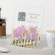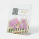 Scan the customizable QR code to donate easily (links to Honeyfund, Venmo, PayPal, or registry). Gold script text: "Support Our Honeymoon Adventure" or similar. Ideal as plastic pedestal sign (8x10 display with base) for gift tables or dessert stations. Vibrant Zazzle print—durable, eye-catching! Coordinates with lilac invitation suite, welcome sign, favors, recipe items, games. Personalize text/fonts easily. Order now for fast shipping—make the honeymoon bloom!