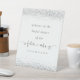 Futura Sra. Silver Purpurina Bienvenida a la Ducha Bridal. Future Mrs. está en un guión con motivos de corazón y anillo y personaliza fácilmente el resto del texto. Los elegantes bordes falsos de plata purpurina están en los bordes superior e inferior.