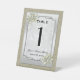 Bello Rótulo elegante y sofisticado Boda Número de Mesa Pedestal con un fondo purpurina purpurinoso de oro, un marco elegante de plata en un borde plateado con una decoración floral de bonito perla decorada en las esquinas, todo sobre un fondo blanco damasco lleno de remolinos y flores. Un diseño elegante y romántico para su día especial. Todo el texto es totalmente personalizable para satisfacer sus necesidades, si desea ayuda para el personalizar de su producto o quiere productos a juego, por favor contáctame a través de mi tienda y estaré encantado de ayudarle.