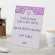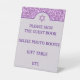 Crea tu propio y elegante rótulo de Bat Mitzvah con este diseño purpurina de imitación violeta en firmes carteles peatonales. El sencillo diseño de arco y estrella de David, situado en un fondo púrpura de lavanda pastel pálido, es el telón de fondo para el texto personalizado en un color púrpura real oscuro. Crea tantos carteles personalizados como necesites, desde "por favor firma el libro de invitados" a "selfie photo booth" o "regalo table" escrito exactamente como quieras en cada cartel morado de lavanda. Los letreros del personalizado Bat Mitzvah son sólo otra forma de elevar la decoración fiesta de su pequeña niña.