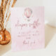 ¡Este es un Rótulo Pedestal de Baby Shower Diaper Raffle Table con globo aerostático rosa!