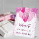 Un cartel de bienvenida para una fiesta de cumpleaños glamurosa y femenina del 18 (o de cualquier edad). Un fondo blanco con elegantes chispas falsas y globos rosa pastel y rosa caliente. Personalice y agregue un nombre y una edad de 18 años. Letras rosas oscuras.