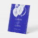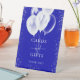 Un fondo azul real. Decorada con finos destellos de purpurina plateado y globos blancos. Con el texto: Tarjetas y regalos. Gracias!