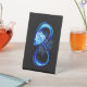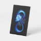 Luminous infinity symbol with glowing, beautiful, lushly blooming rose made of blue flames on black background.
