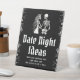 Trae un giro espeluznante a tu ducha de novias con este gótico cartel de "Ideas de la noche de la noche de Halloween". Con elegantes fuentes góticas y divertidos gráficos esqueléticos, este cartel invita a los huéspedes a compartir sus divertidas y espeluznantes sugerencias de la noche para la feliz pareja. Perfecto para añadir un toque único a una ducha nupcial con temática de Halloween, este letrero es a la vez elegante y conmovedor, marcando el tono perfecto para un evento memorable. 💀 💀 💀
