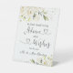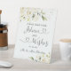Magníficos rosas de crema blanca con vegetación vegetal en acuarela Boda Consejos y Rótulo Pedestal
