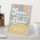 Groovy Adivinan Cuántos Socks Retro El Juego De Baby Shower Pedestal Rótulo.