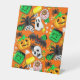 Deliciosos, coloridos y espeluznantes adorables caramelos de Halloween, que incluyen calaveras, fantasmas, ojos, murciélagos, arañas, calabazas. Creado en la técnica de arte gráfico vectorial, y ensamblado para componer un diseño de patrón sin problemas de textil/tela. Copyright BluedarkArt.