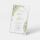 Una invitación a la boda, de diseño bonito, con un suave fondo de acuarela verde adornado con elementos florales. La invitación anuncia al boda , invitando a sus seres queridos a celebrar su día especial.