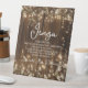 Jenga Boda Guestbook String Lights Wood Rótulo - Este elegante Rótulo de madera marrón y blanco, con bonitas luces de cuerda y floridas blancas, puede ser personalizado con sus detalles Bodas (el producto no está hecho de madera).
