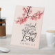 El cartel de boda de escritura de cita inspiradora representa una fotografía de la naturaleza de una rama de flores rosadas en un fondo rosado. Presenta una parte de una Biblia motivadora Verse Jeremiah 31:3, "Te he amado con un amor eterno". El cartel es una buena elección para cualquier época del año, incluyendo ocasiones especiales como El día de San Valentín, bodas y aniversarios. Foto de Patrick Shaun.