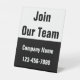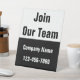 The top portion of the sign is white. Black display text is at the top. You can edit the text to show a custom message. (Shown: Join Our Team) The bottom portion is black with white text. There are two lines of display text at the bottom. You can edit them to show a custom message such as your company name and phone number.