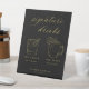 Bebidas de Moda contemporáneas con firma minimalista de oro, cartel de bar de boda negro.