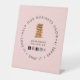 Deliciosa acuarela Chocolate chip cookie tower logo en fondo rosado "Ayuda a nuestro negocio crecer" Pedestal Rótulo con Amor lo sacude y lo comparte" con íconos de medios sociales para facebook, twitter e instagram. Puede cambiar la imagen del mezclador de pasteles para insertar el logotipo de su empresa. ¡Será una herramienta perfecta para tu pequeña empresa para animar a los clientes a promocionarte en las redes sociales!