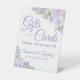 Este símbolo de la mesa de bonito está diseñado para que sea fácil para sus huéspedes bodas saber dónde dejar sus regalos y tarjetas. Tiene un bonito diseño de moda boho con rosas acuáticos pintados a mano y flores en tonos polvorientos morados, lilos y lavanda, además de brotes de hojas de eucalipto y vegetación. El cartel dice: Regalos y tarjetas ¡Muchas gracias! Hay sitio para sus nombres y la fecha del boda a continuación.