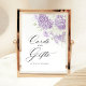 Lavender Lilac White Floral Cards & Gifts Wedding Soft lavender and white watercolor hydrangea florals frame this elegant Cards and Gifts wedding sign. Designed with flowing calligraphy and a clean, modern classic layout, it guides guests beautifully while complementing refined reception décor. A timeless accent for romantic lavender weddings.