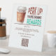¡Promociona tus recompensas de café con este llamativo cartel peatonal! Con un diseño moderno y una pintura a la taza de café acuarela, este cartel personalizado anima a repetir las visitas con el divertido lema "Perk Up! Estás Ganando Recompensas". Perfecto para contrapesos, áreas de punto de venta o entradas de cafés, este cartel resalta su programa de fidelización e incluye espacio para un código QR para enlazar a recompensas digitales, menús o formularios de registro. Una adición elegante y funcional a la decoración de la cafetería que aumenta el compromiso del cliente y la fidelidad a la marca.