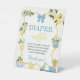 Coordinate your diaper raffle station with this 8x10 "Ciao Baby" table sign. Featuring fresh watercolor lemons and clear instructions, it encourages guests to participate in the fun. This sign adds a professional touch to your activity table while maintaining the whimsical Mediterranean aesthetic of your event.