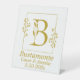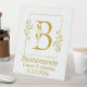 El elegante rótulo peatonal presenta un marco botánico de oro dibujado a mano con la letra botánica B en el centro. Personalizar con el nombre de la pareja y/o la fecha u otro mensaje