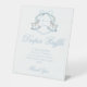 Mejora tu ducha de bebé con nuestra moda y adorable letrero de rifa de pañales. Con un elegante escudo francés clásico adornado con caballos de madera mecedora, flores azules de primavera y un lazo de arco acuarela, junto con un sofisticado guión de caligrafía azul para bebés, este cartel le da un toque de estilo a su celebración. ¡No te pierdas esta deliciosa adición a tu decoración de eventos!