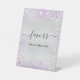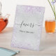 Un fondo con apariencia metálica plateada falsa. Decorado con polvo de purpurina morada falsa. Con el texto: ¡Favores, por favor tome uno!