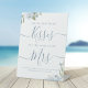 Entretenga a sus invitados con este divertido juego de adivina cuantos besos para la futura Sra. en la despedida de soltera, cuenta con flores acuarelas románticas en azul polvoriento y verde salvia, y letra moderna y elegante, simple y sofisticado, ideal para una despedida de soltera boho moderna, fiestas de bodas en jardines botánicos.