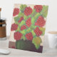 La pintura presenta un vibrante ramo de bayas rojas de viburno, cuyos racimos estallan con un color profundo y rico. Las ramas están adornadas con hojas verde oscuro ligeramente brillantes que contrastan hermosamente con el rojo intenso de las bayas. Los tallos son delicados pero firmes, manteniendo unidos los racimos en una disposición natural. El fondo es suave y apagado, quizás en tonos de beige claro o gris cálido, lo que permite que las brillantes bayas resalten aún más.