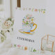 Letrero de texto personalizado con una ilustración de flores silvestres, vegetación y taza de té. Personalice con su propio texto si lo desea.