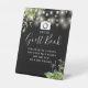 Este elegante letrero de libro de invitados de fotos en blanco y negro con luces de cadena botánicas de eucalipto es perfecto para todas las celebraciones. Diseñado por Thisisnotme©