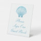 Invite a sus huéspedes a compartir su amor y recuerdos con este elegante cartel de "Please Rótulo Our Guest Book", que incluye una suave concha azul en tonos turquesa. Diseñado para bodas en la playa y románticas celebraciones de verano, este cartel de inspiración náutica le da un toque cohesivo y elegante a su evento. Ya sea que esté planeando una ceremonia junto al mar o una recepción con temática oceánica, el encanto costero de este diseño de conchas complemente su decoración boda.