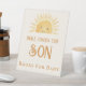 Este Rótulo peatonal Books For Baby Baby Shower cuenta con un sol de color amarillo sonriente y una tipografía de terracota. Acuarela original © Michele Davies.