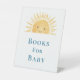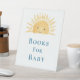 El Rótulo Pedestal Books for Baby Baby Shower cuenta con un sol sonriente de color amarillo y una tipografía azul. Acuarela original © Michele Davies.