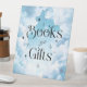 Dirija a sus huéspedes a la mesa de regalo y reserva con este elegante cartel de ducha de bebé "Books and Gifts". Con un tranquilo cielo azul y un diseño de nubes blancas, este cartel le da un toque de encanto celeste a la decoración de su ducha de bebé. Perfecto para una ducha de temática angélica o paradisíaca, este letrero hace que sea fácil para los clientes saber dónde colocar sus preciosos regalos y libros para el bebé. Ya sea una ducha de bebé o un evento de género neutro, este signo ayuda a crear una hermosa y cohesiva pantalla.