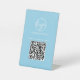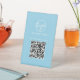 Personalizado Código QR Rótulo Pedestal que incluye su logotipo y su código QR junto con su nombre comercial. Todos los elementos de diseño son blancos sobre un fondo azul claro y pueden cambiarse en la herramienta de edición de diseño. Utilice estos sencillos signos de pedestal para dirigir a los huéspedes a su menú usando un código QR para una opción sin contacto. Estos Rótulos del menú QR Code son perfectos para poner mesas en su restaurante / bar / cafetería / cafetería.