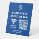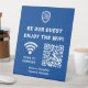 Un simple escaneo personalizado de negocios azul para conectar el código QR Wifi señal de pedestal en un estilo minimalista moderno.