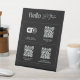 Nuestro elegante y moderno signo de peatón está diseñado para conectar al instante a sus clientes con su presencia digital. Con tres códigos QR dedicados, el acceso es fácil: código QR Wi-Fi - Permite a los visitantes conectarse a su red con un solo escaneo. Código QR de medios sociales - Dirige a los seguidores a sus perfiles para actualizaciones, promociones y compromiso. Código QR del sitio web - Conduzca el tráfico a su sitio web para obtener más información, reservas o compras en línea.