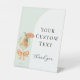 Elegant Chic Love At First Spritz Green Arch Bridal Shower Customizable Tabletop Sign - Editable template - Personalized Bridal Shower Decor - Featuring a watercolor Aperol spritz with an orange slice garnish, adorned with a coquette orange bow. The design has a soft, pastel mint green background and a arch frame. Edit the custom text field with any bridal shower signage you need, whether "Cards and Gifts", food and drinks signage or mimosa bar.