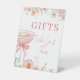 Love in Bloom themed gifts table pedestal sign designed for bridal shower celebrations. Created to guide guests with a romantic, floral look that coordinates beautifully with elegant shower decor. Ideal for bridal showers, engagement parties, and wedding shower gift tables. Editable text. Clean print-ready layout.