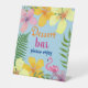 Tropical, acuarela floral, verano, Luau Dessert Bar símbolo de peatón, con coloridas flores acuáticas, palmeras y flamingo rosa. La elección perfecta para la decoración de la fiesta de cumpleaños de verano.